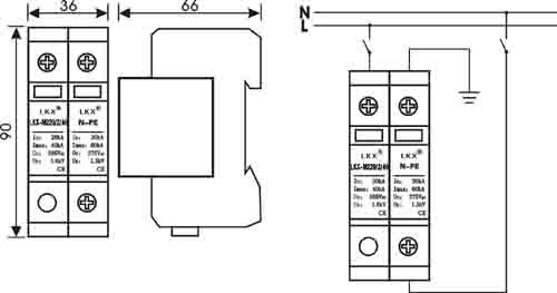 单相电源防雷模块 | LKX-M220/2/20 | 1+NPE、18mm | 10 | 20 | 1.5 | ≤25 | 220 | 385 | ≤20 | 600 | 40 |